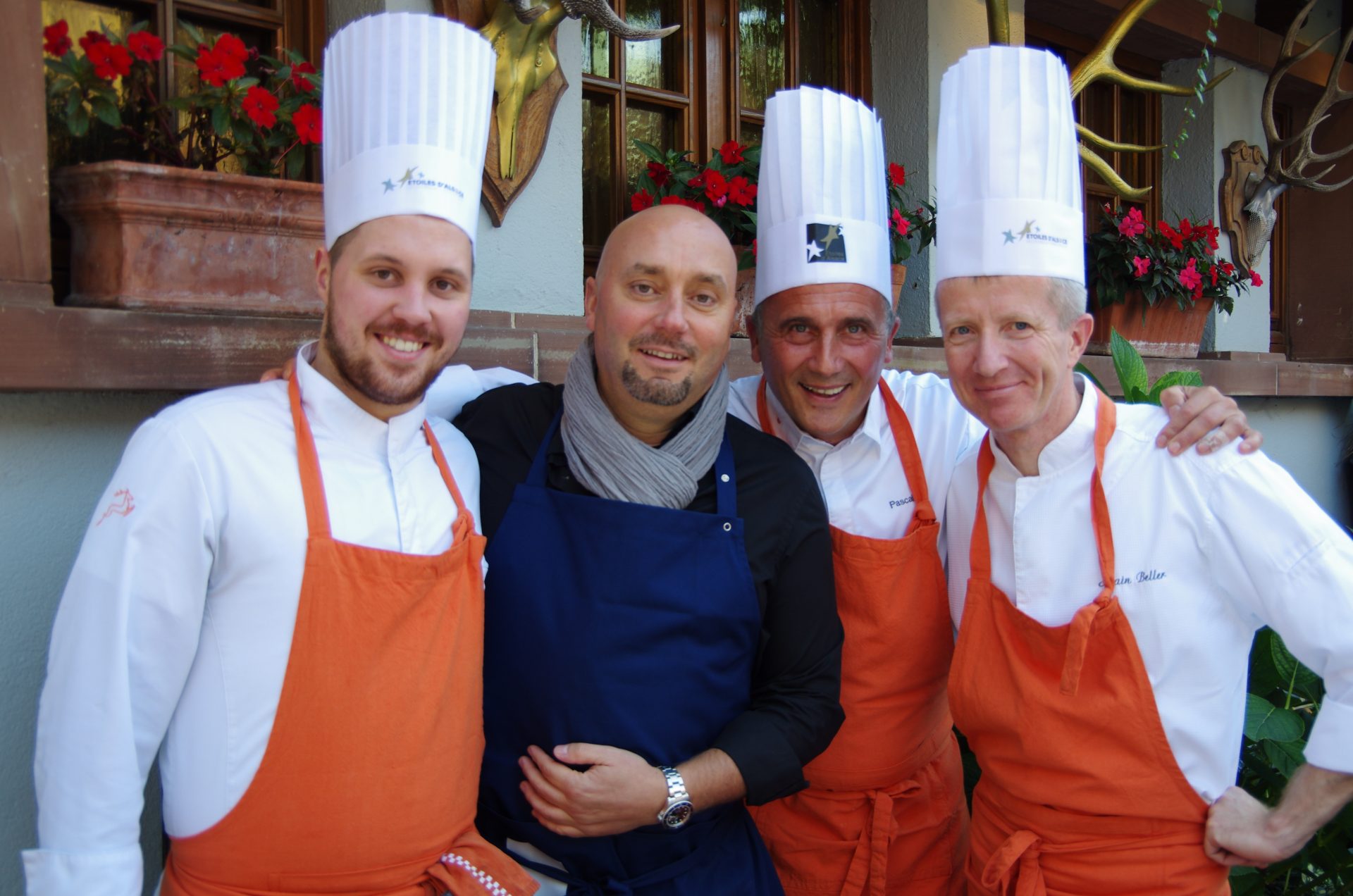 Alain a décidé de rejoindre en 2010 notre équipe à Marlenheim en tant que second de cuisine. « J’ai eu un très bon contact avec Pascal Schmitt et Michel Husser. Nous parlons la même langue et le respect du produit nous unit » nous confie Alain.  Il a vite imprimé l’esprit du Cerf : ne jamais s’éloigner de la qualité du produit et du terroir. Il n’y a pas de hasard ni d’invention ultra originale dans nos assiettes mais toujours une histoire derrière chaque plat.