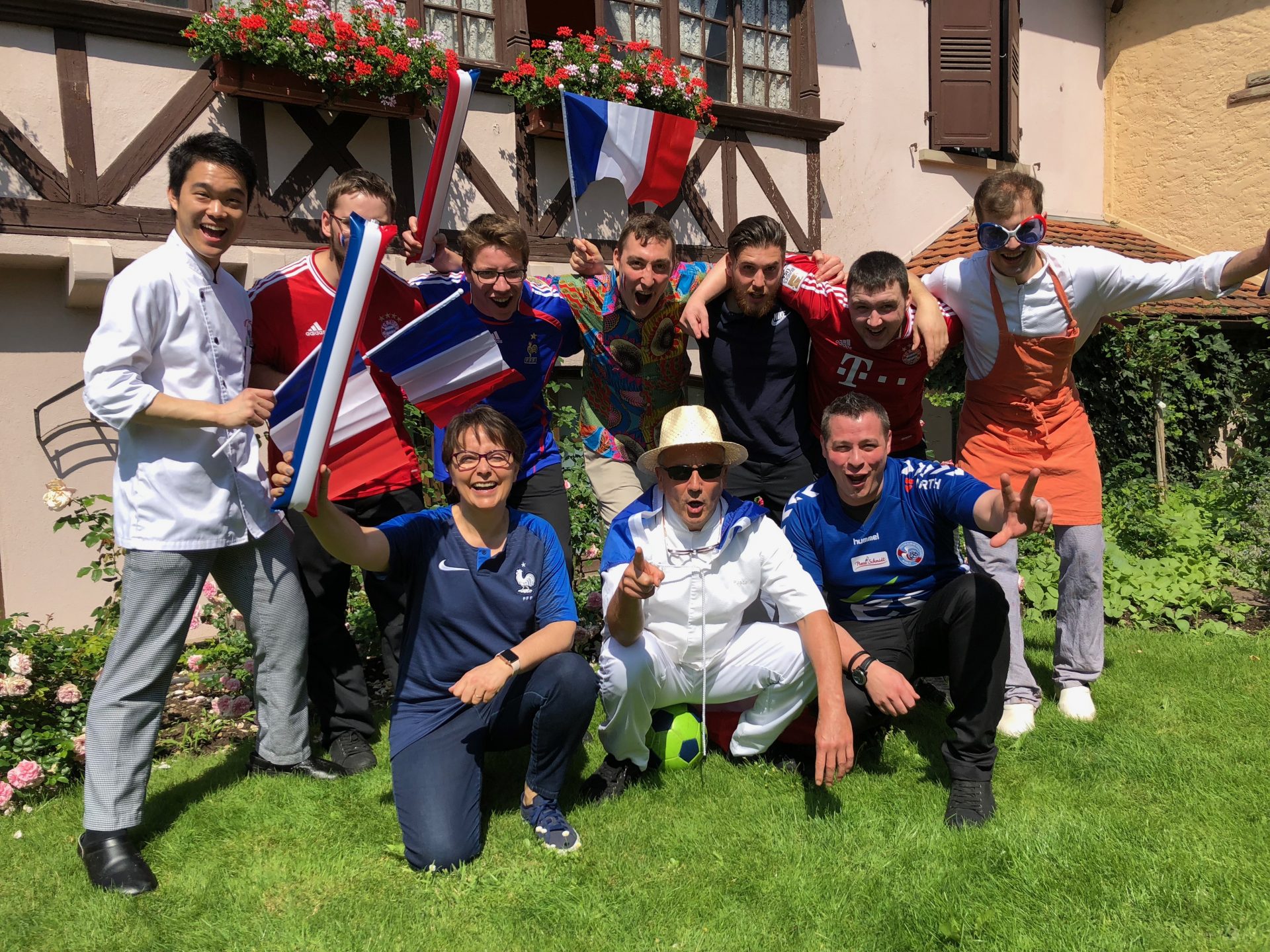 Chez les Philipps, on joue au foot de père en fils depuis des générations ! De 5 ans à 14 ans, à ses débuts en cuisine, Joël était un grand joueur. Aujourd’hui, il entraine l’équipe de cuisine entre 2 services dans les villages alentours une à deux fois par semaine. Nicolas en Pâtisserie et Jonathan se donnent à fond ! Joël est un grand fan du Bayern Munich et tire sa toque au racing qui a fait vibrer les alsaciens cette année au stade de la Meinau. « Nous avons de la chance d’avoir un grand club de foot » lance t-il !
