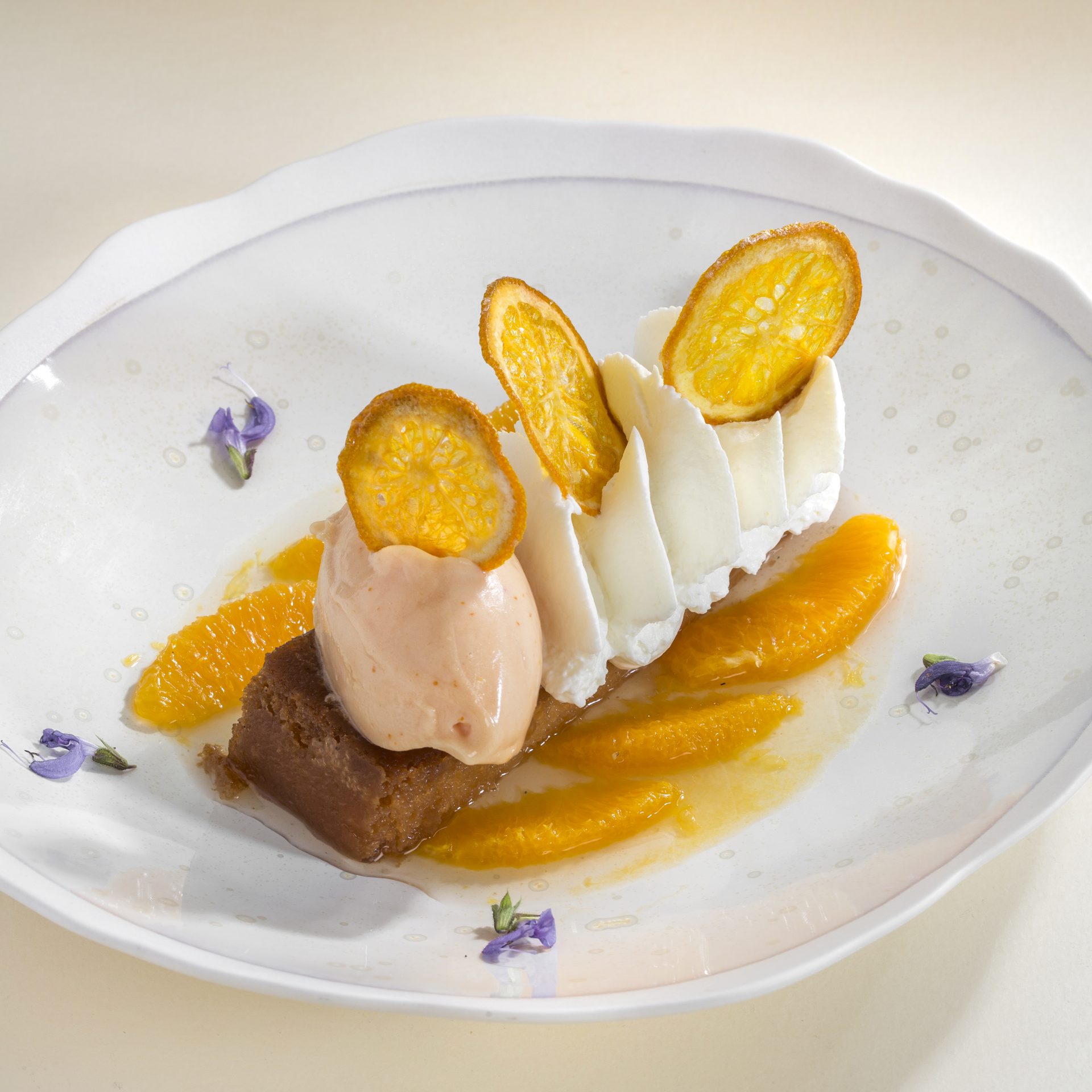 Il fallait oser, Joël s’est lancé ! Une envie de surprendre par la forme et d’oublier le classique dessert. La liqueur de rose et les fruits exotiques se mêleront au Perrier-Jouët rosé avec ses notes beurrées et briochées. La grande finesse de ce Champagne est une belle évidence.